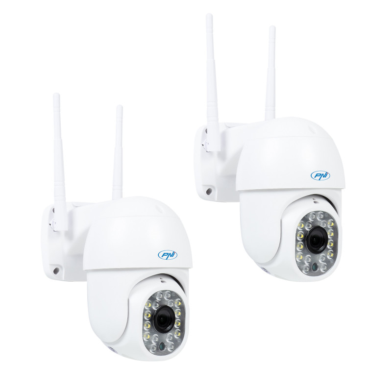 Set of 2 PNI IP440 wireless video surveillance camera, WiFi, PTZ, 4MP, digital zoom, micro SD slot, stand-alone, with intelligent functions