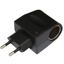 Reliable 220V AC to 12V DC converter with EU plug that allows you to power car cigarette lighter devices directly from a standard wall outlet. GPS units, dash cams, and other 12V devices at home or in the garage.