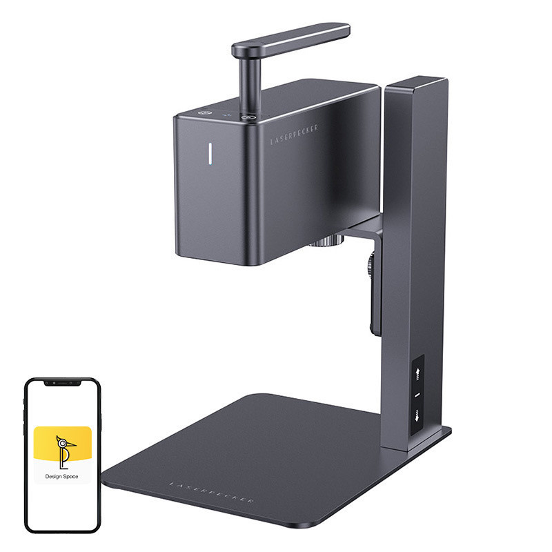 Despite its small size, the LaserPecker 2 is extremely powerful. Its compact design makes it easy to carry and allows engraving in places that are difficult to reach with other devices. The electric stand is another asset of the engraver. It allows precise adjustment of the focal length using side buttons, which increases the accuracy and quality of engraving. In addition, the ability to hold the laser at the desired angle allows for optimal adjustment to the engraved surface.
