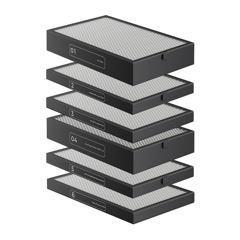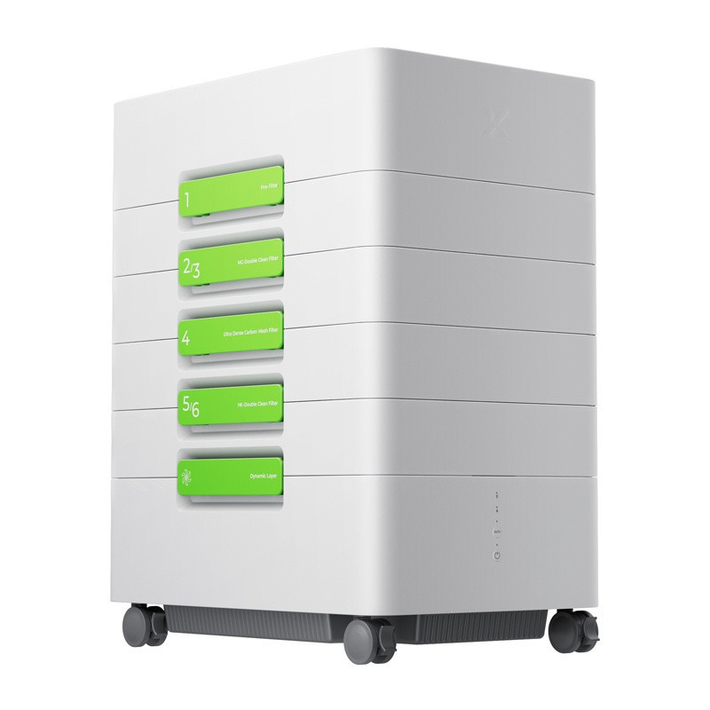 The SafetyPro™ AP2 Max uses a seven-layer filtration system that removes both large particles and microscopic fines and harmful gases from the air. The SuperCyclone filter captures 99% of particles over 5 μm in diameter and protects subsequent layers from clogging. Pre-filter and medium efficiency filters eliminate dust, fibers and up to 95% of PM2.5 fine dust, while two carbon layers - activated carbon and ultra-dense carbon mesh - neutralize volatile organic compounds and 99.99% of odors. A formaldehyde filter breaks down toxic HCHO into water and carbon dioxide, reducing its concentration. The final barrier is the HEPA filter, which traps 99.97% of particles, allergens and viruses as small as 0.3 micrometers.