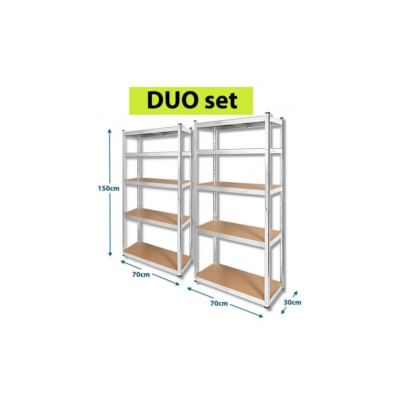 Affordable DUO: 2 pcs. transformable metal shelves (150x70x30 cm) | Galvanized