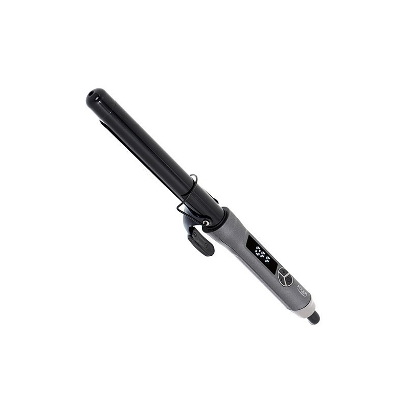 The super slim 10mm curling iron creates tight curls quickly and precisely. It features a digital temperature display with 6 settings up to 210°C and a quartz-ceramic coating for even heat distribution.