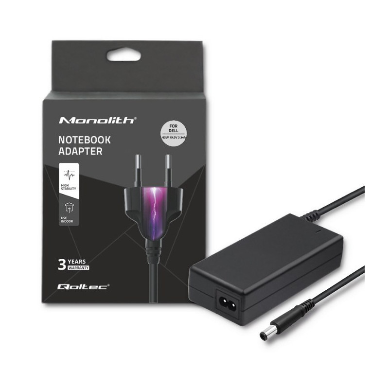 65W power output with 19.5V voltage and 3.34A current rating.