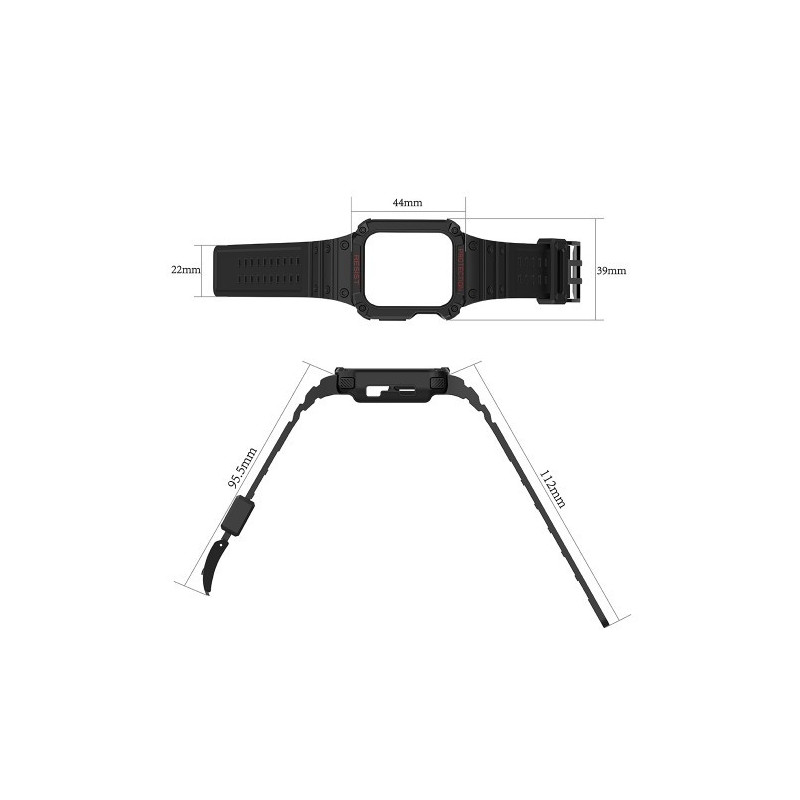 Protect Strap Band - Band with Case for Apple Watch 7 / 6 / 5 / 4 / 3 / 2 / SE (45 x 44 x 42 mm), Case - Armored Watch Case