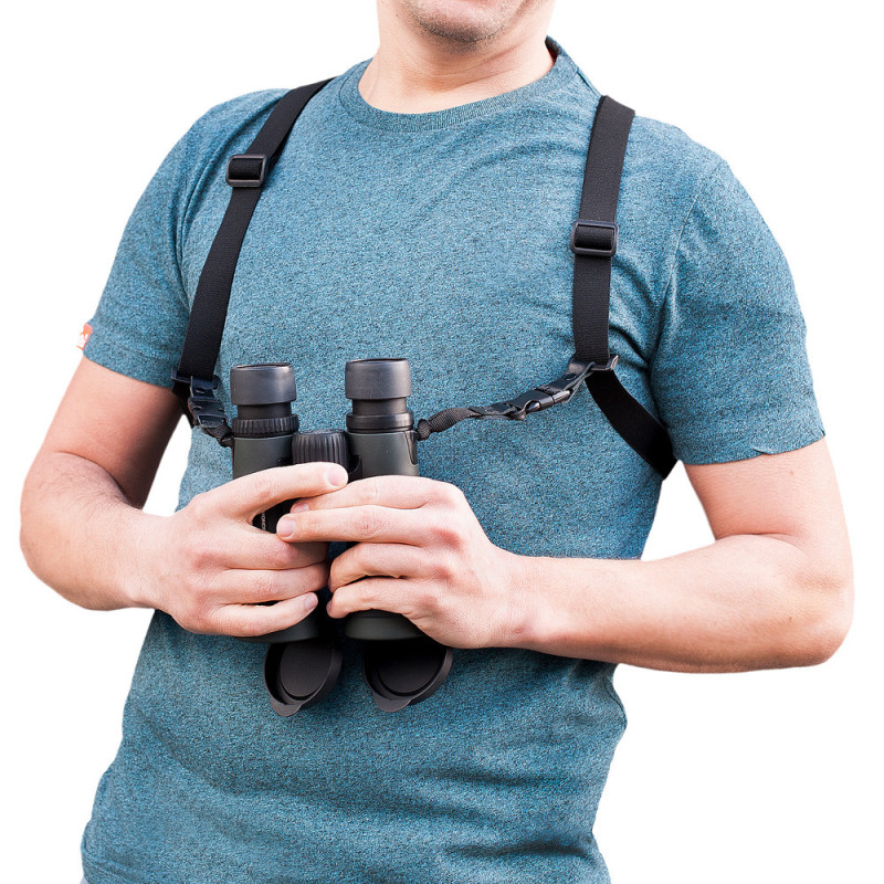 The Caruba binocular strap allows you to comfortably carry your binoculars, distributing their weight evenly across your shoulders. It features adjustable straps and a sturdy construction to keep your binoculars safe and within easy reach.