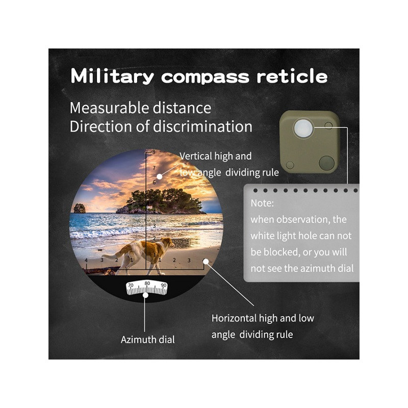 The built-in rangefinder and compass scale can be illuminated with the light on/off button.