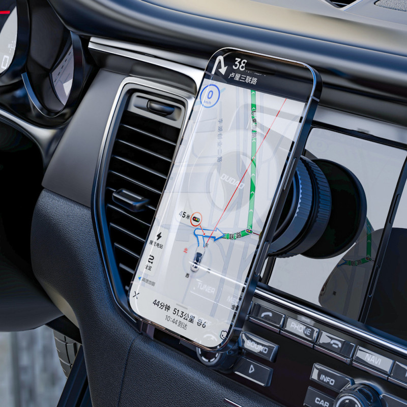 The Dudao F24PRO car mount is designed for maximum stability and comfortable smartphone use while driving. Vacuum mounting technology ensures a very strong and secure hold on both the windshield and dashboard. The MagSafe-compatible magnetic system allows for quick and secure phone placement. The robust construction effectively reduces vibrations, even on uneven surfaces. Multi-directional adjustment allows for precise screen positioning.