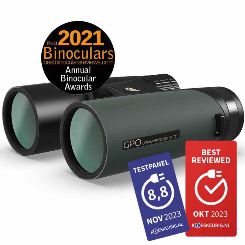 High-quality 8x42ED binoculars with Schmidt Pechan prism type and waterproof magnesium housing. They feature a 143 m field of view at 1000 m, an 18 mm eye relief and a close focusing distance of 1.8 m.
