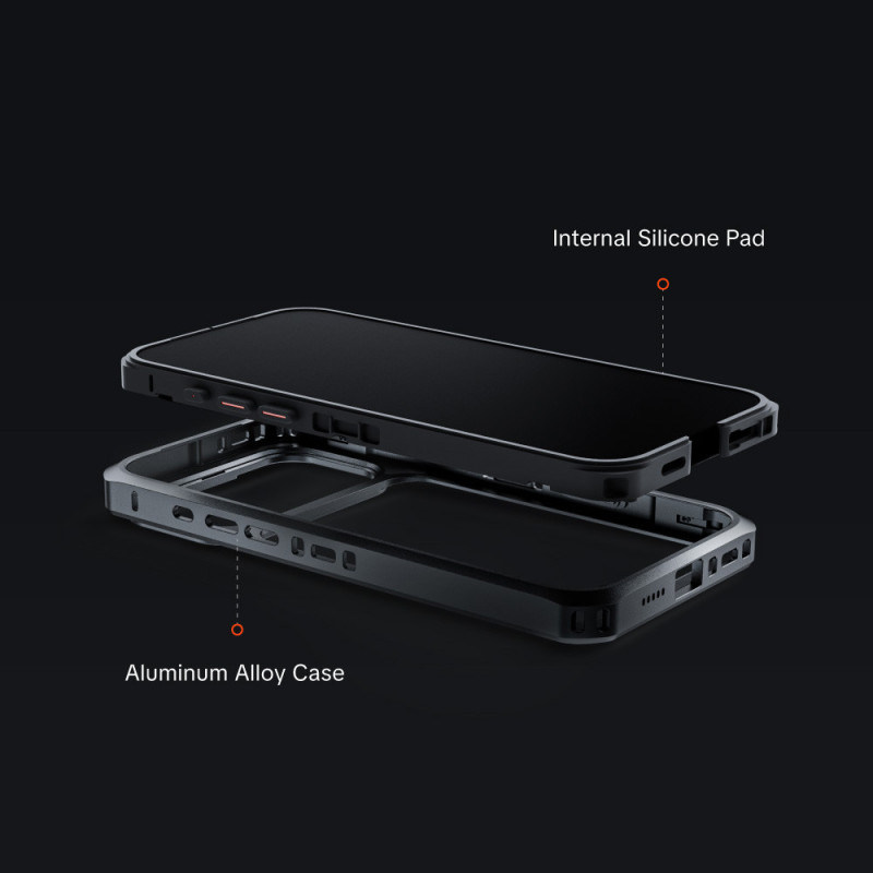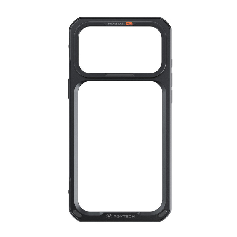 The PGYTECH ProShot Phone Cage is a lightweight aluminum holder designed for the iPhone 17 Pro that provides protection and easy access to the device's camera features. It features multiple expansion ports for accessories and a silicone coating for a secure fit.