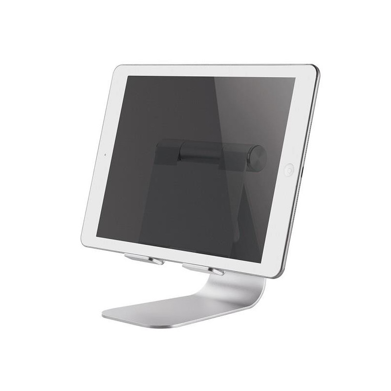 The Neomounts by Newstar DS15-050SL1 is a stand for smartphones and tablets up to 11?. The clever tilt option (90°) allows the stand to change to the ideal viewing angle. The tablet stand is ideal for hands-free video calling, watching a movie or playing a game. Thanks to the open configuration, the charging port remains accessible and charging wires can be routed to the back of the stand.The lightweight, compact design makes the stand ideal to take with you wherever you want. The anti-skid silicon pads and safety ledge stopper ensure solid positioning of your tablet.