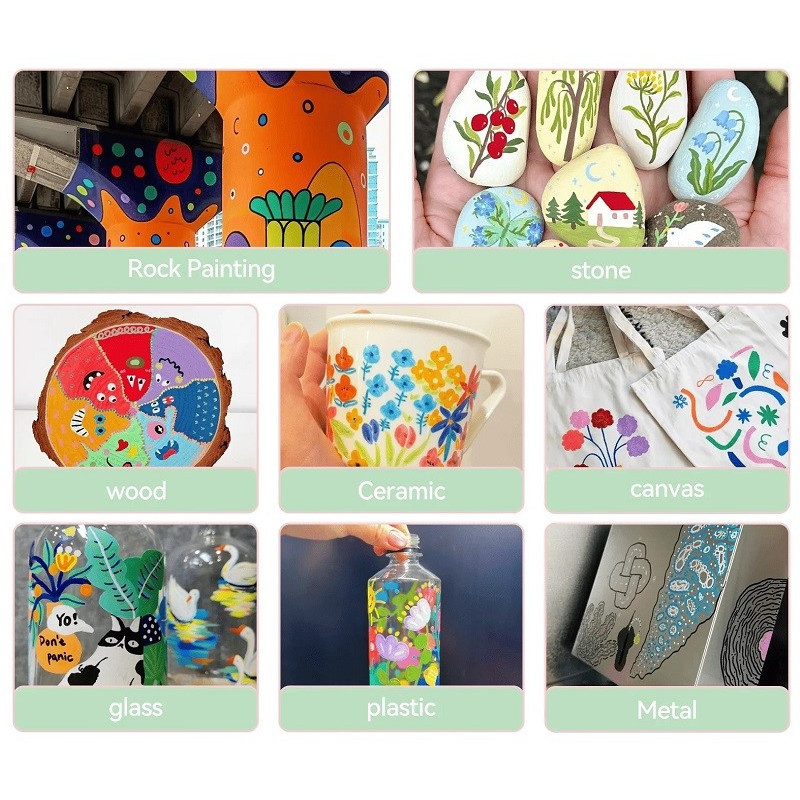 A set of 48 waterproof acrylic paint markers with a brush tip, ranging in width from 1-6mm, suitable for a variety of surfaces. The markers are safe, odorless and water-based, making them perfect for DIY creative projects.