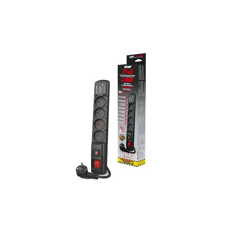 Acar F4 USB A+C surge protection cable (fast charger) 5m ; black
