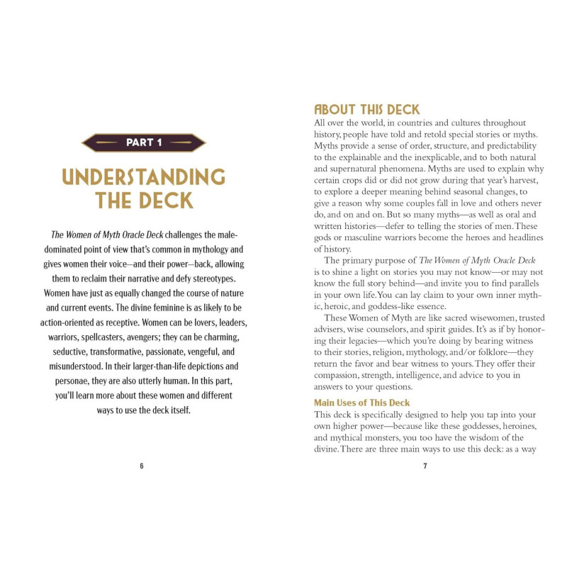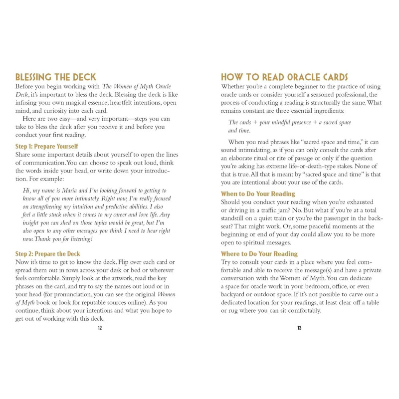 The Women of Myth Oracle is an empowering deck that allows you to tap into the wisdom of 50 mythical women, each with moving stories of triumph, tragedy, victory, heartbreaking loss, and often everything in between. This deck was created to capture the lessons, advice, wisdom, and symbolism of these women and place them in your hands. This deck is a powerful tool for intuition, self-discovery, and connecting with the divine feminine.