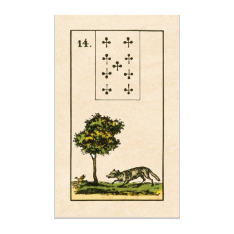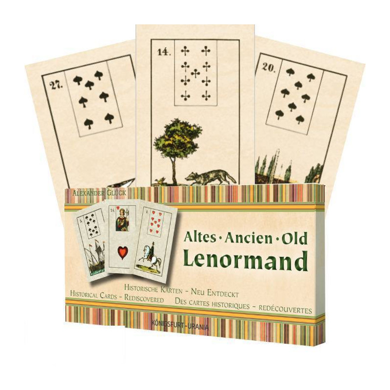 The atmosphere of the early Lenormand cards is an invitation to a special experience. The 36 historical cards, with their original format (4.4 x 7.6 cm) and pointed corners (typical of the time), are housed in a beautiful, sturdy box. The accompanying booklet by Alexander Gluck draws a magical line between the early cards and the cards of today.