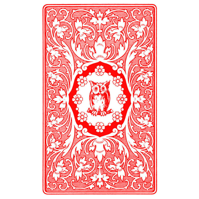 The 'Mlle Lenormand' decks (called 'the owl') are a pocket 'Lenormand' deck containing 36 cards. In the 'Blue Owl' deck, each card has an associated playing card embedded in an old-fashioned image, the deck depicts an elemental inset.