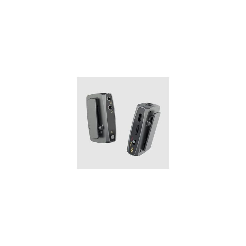 The Mirfak Audio WE10 is a two-channel wireless microphone system for content creation, featuring integrated omnidirectional microphones and a 3.5mm input for external microphones. The system operates at a 2.4GHz frequency for reliable audio transmission, and features a multi-function display for monitoring audio levels.
