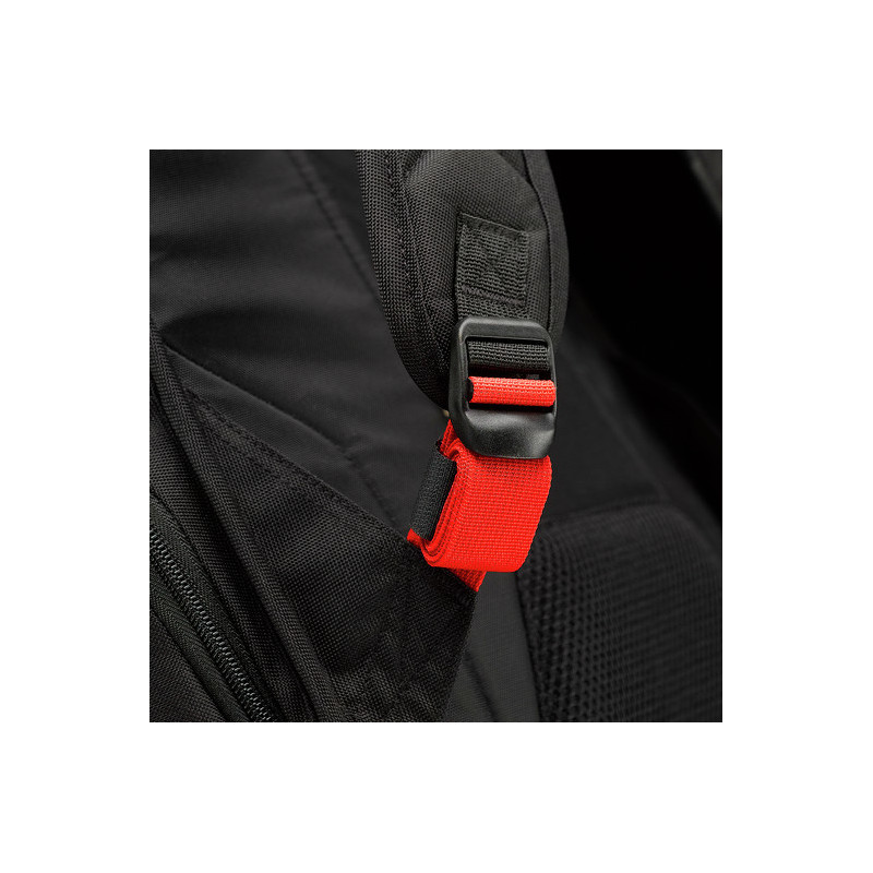 An integrated laptop compartment holds laptops with screens up to 16 inch