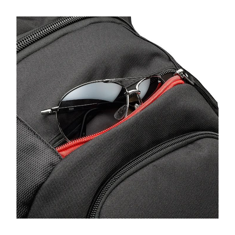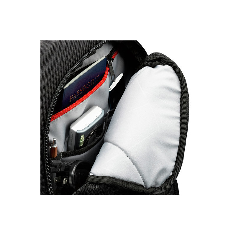 Front pocket of the pack includes an organization panel that stores your cell phone, iPod and other essentials while also allowing plenty of space for power cord