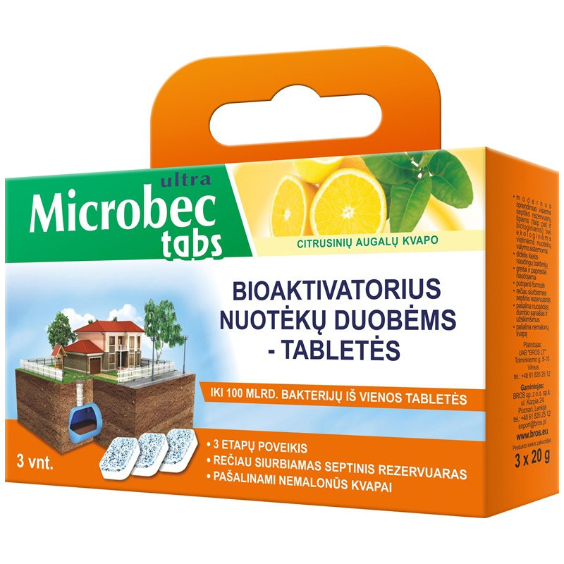 | Papildoma informacija | Mikrobiologinė priemonė, kuri palengvina biologinio valymo procesus vietinėse kanalizacijos sistemose. Reguliarus MICROBEC naudojimas mažina nešvarumų kiekį vandens talpoje, valo kanalizaciją ir sanitarinių įrenginių sistemas, šalina nemalonius kvapus |