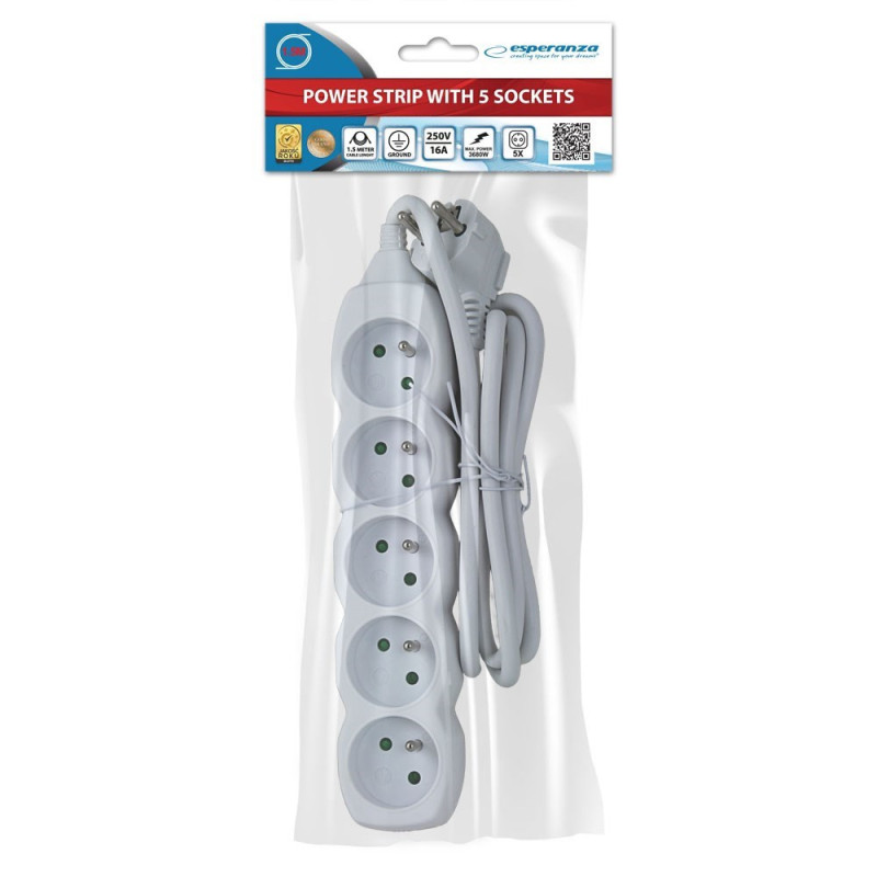Esperanza ELK207W power extension 1.5 m 5 AC outlet(s) Indoor White
