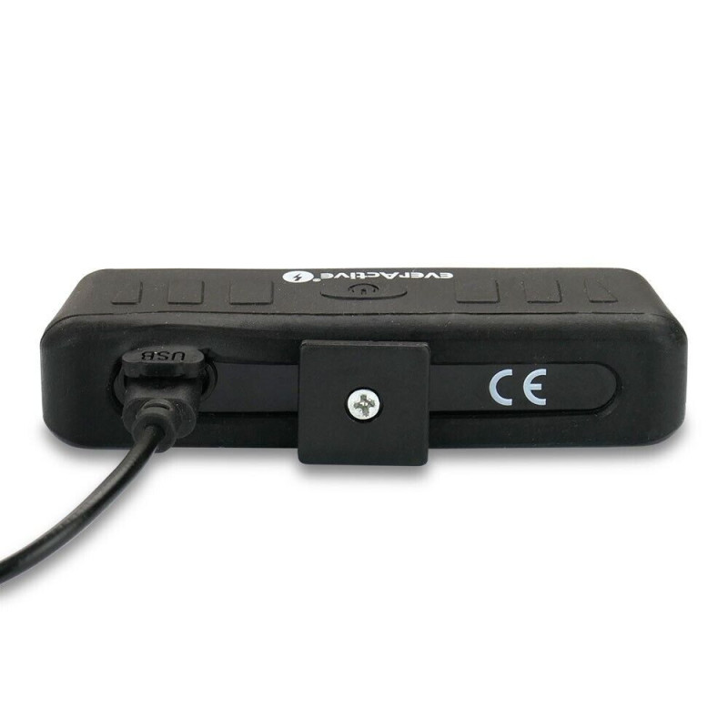 BL-150R is a small and at the same time very powerful bicycle lamp (2in1) from the everActive brand. The maximum light intensity of 150 lumens ensures excellent ambient lighting even in complete darkness. BL-150R has a unique function, it can act as a front and rear light! We change the light color by holding the switch for a long time, it is a very convenient and intuitive solution. The light power is provided by a powerful two-color COB diode, providing up to 150 lumens in the highest operating mode! Thanks to high-class components, our flashlight looks complete, it will work both on a short family ride and on a long-distance rally! The lamp is equipped with a high-quality reinforced rubber handle, which allows you to mount the device according to your needs (vertically/horizontally). BL-150R is powered by a built-in 500 mAh lithium-ion battery. The battery is charged using a microUSB connector, charging time is about 2 hours.