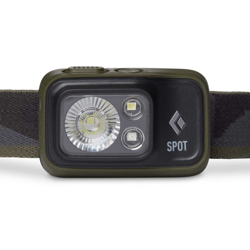 The Black Diamond Spot 400 headlamp features a waterproof design with an IPX8 rating and a maximum beam distance of up to 100 meters. It has five light modes, a rechargeable battery, and weighs 44.5 grams.