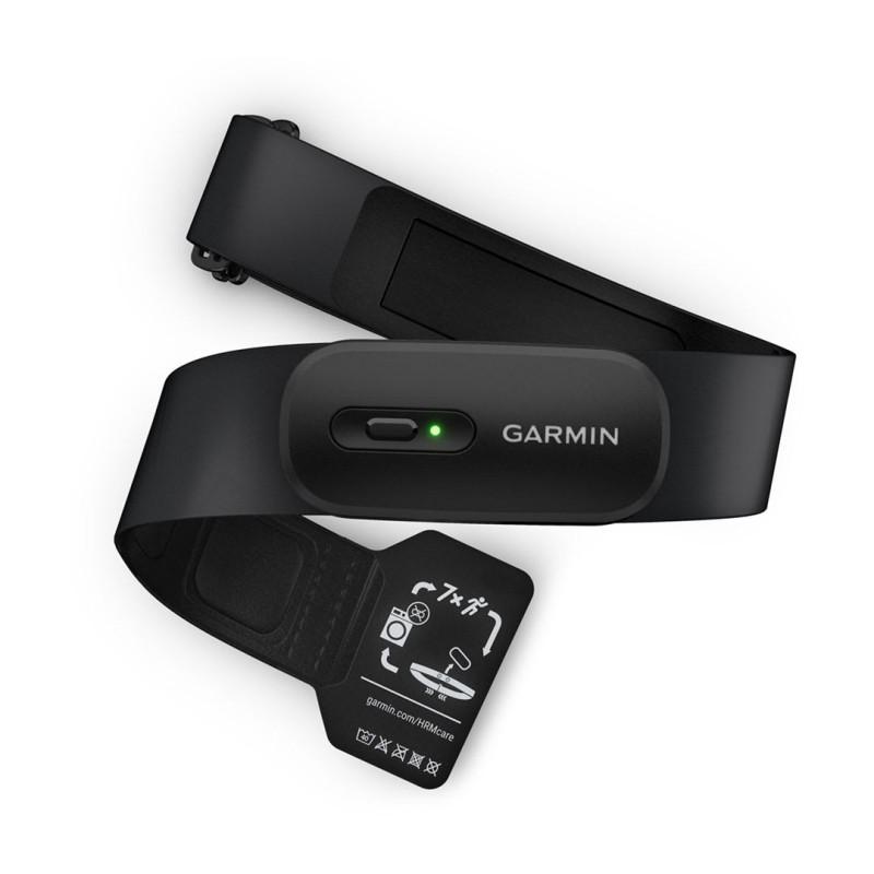 The Garmin HRM 200 heart rate monitor is a Bluetooth and ANT+ compatible device for measuring heart rate with an adjustable strap that fits from 56 to 72 cm. It operates on a CR2032 battery, which has a lifespan of approximately 365 days.