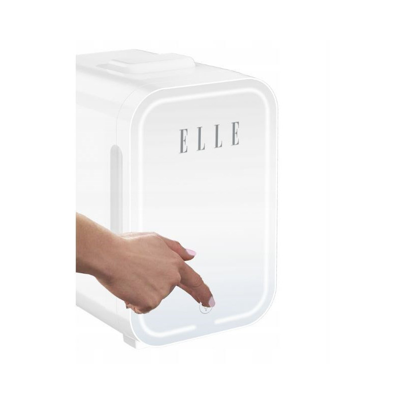 The ELLE 8L mini fridge has an 8-liter capacity and can cool items down to 18 degrees below ambient temperature. It features an integrated LED makeup mirror, interior light, and heating function for added versatility.