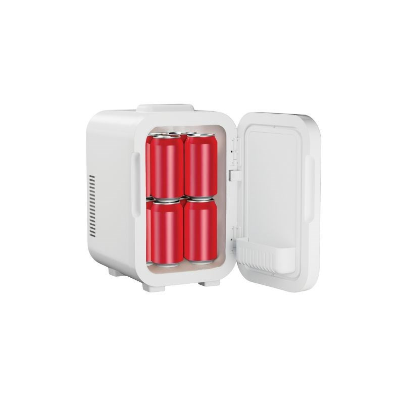 The ELLE 8L mini fridge has an 8-liter capacity and can cool items down to 18 degrees below ambient temperature. It features an integrated LED makeup mirror, interior light, and a heating function for added versatility.