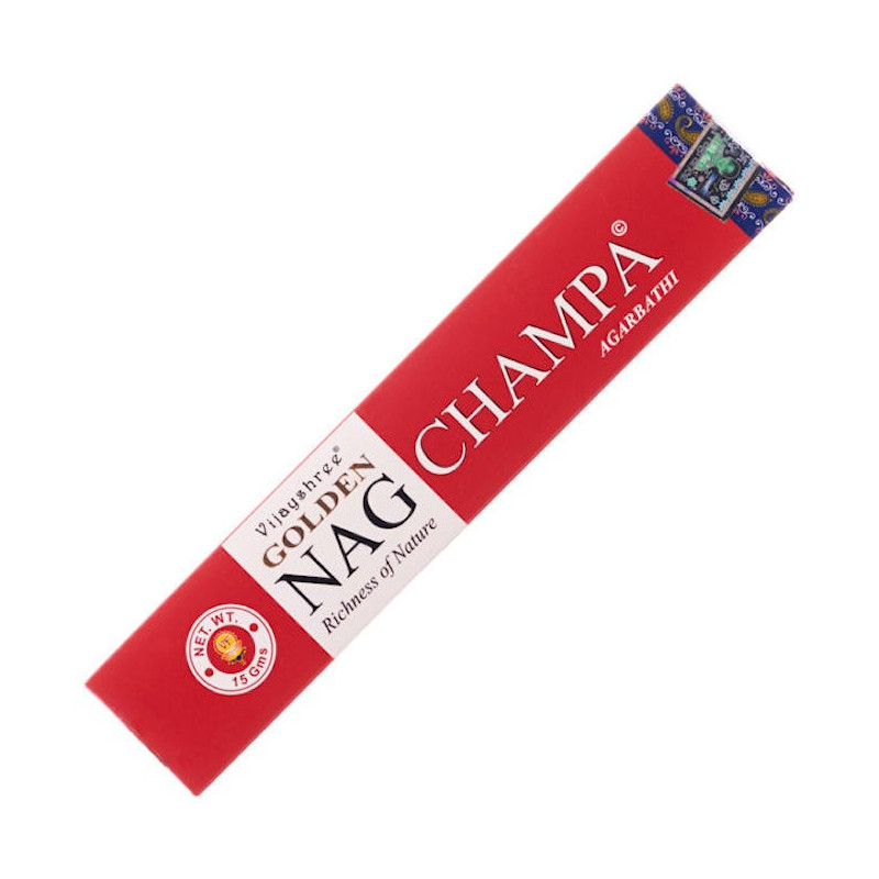 Golden Nag - Champa Incense Sticks by Vijayshree includes about 15 hand-crafted incense sticks made from natural ingredients. Each stick burns for about 30 minutes and is packaged in recyclable paper.