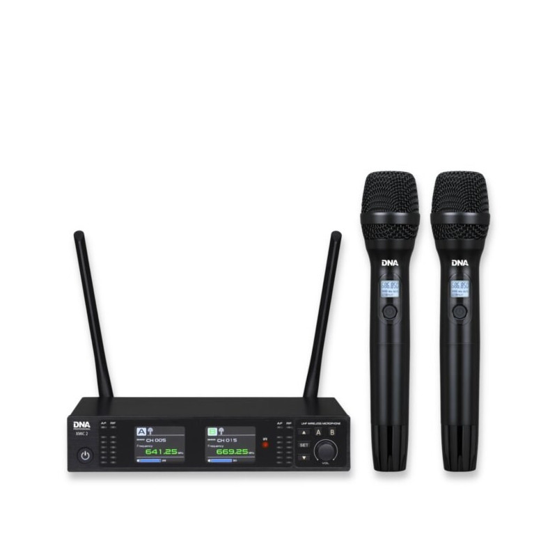 The DNA Professional XMIC 2 is a wireless dual handheld microphone system operating in the UHF frequency range from 518 to 542 MHz. It features a signal-to-noise ratio of over 96 dB, a maximum operating distance of up to 60 meters, and an 8-hour battery life.