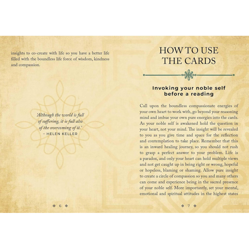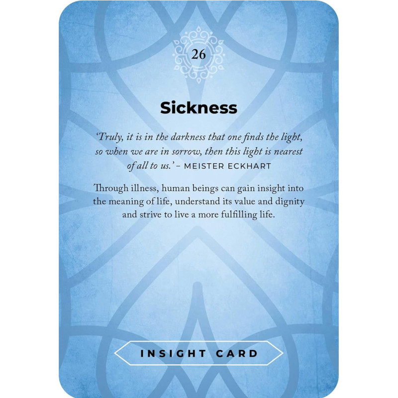 If you feel trapped between the thoughts of the mind and the feelings of the body, here is a healing insight that is readily available to you. Transcend the boundaries of hope and despair by welcoming the Buddha Dhamma into your spacious heart and allowing reflection and contemplation to flow naturally. Most of us are not properly acquainted with ourselves from the boundless compassion of our hearts. Our mind’s version of ourselves is often laden with judgments and distorted opinions. Where is your true self? The Buddha Dhamma Oracle consists of 36 key insights from the great wisdom of Buddhism, called the Buddha Dhamma. These insights are a direct response to the tensions that are at the core of the human condition and that we all experience throughout our lives; tensions that we mistakenly perceive as suffering. An intimate dialogue of truth between your heart and the Buddha Dhamma will restore a noble connection to your essence.