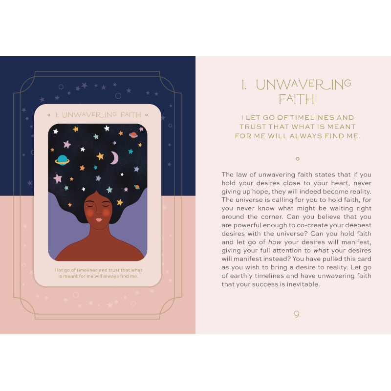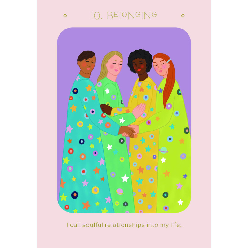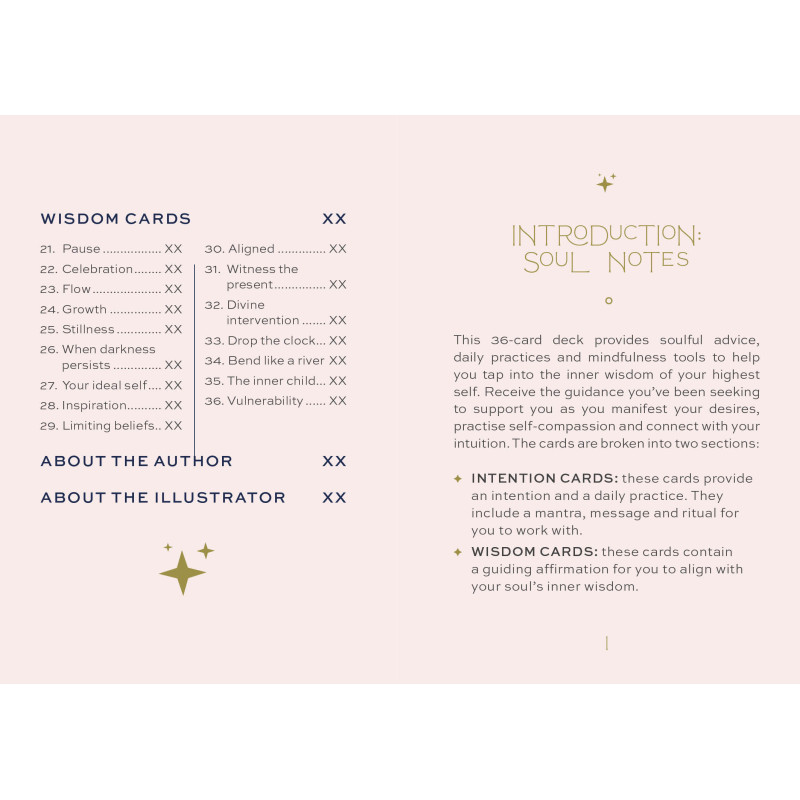 In this 36-card deck, you will find soul guidance, daily practices, and mindfulness tools to help you tap into your inner wisdom. Get the guidance you have been looking for to help you express your desires, practice self-compassion, and connect with your intuition. These cards were designed to align with two suits: the Intention cards give you an intention and a daily practice for the day. They include a message, mantra, and ritual that you can work with. The Wisdom cards contain a guiding affirmation that allows you to align with your soul’s inner wisdom. Use these cards daily for guidance and intention. Each card is an invitation to come back to the present moment; to pause and receive the guidance you need, to show your truest self. Use these messages to connect with your highest self every day.