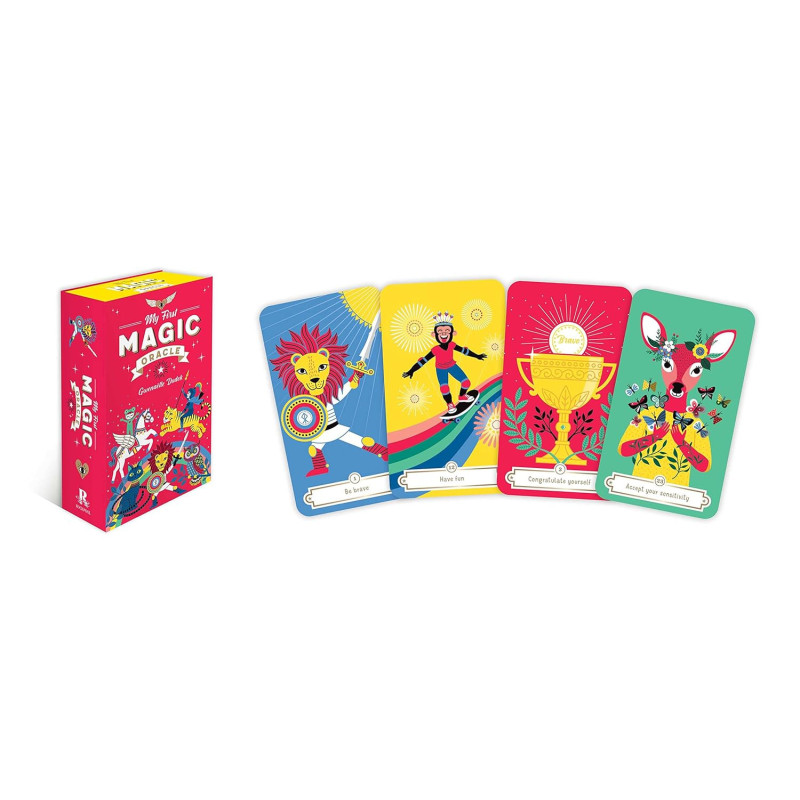 Use this magical oracle to discuss your child's fears in a playful and imaginative way. The 'My First Magic' oracle consists of 42 magical cards and a guide to help your child get to know themselves better and find answers. These cards will help them live in the present and create their future and the life of their dreams. This oracle will help them find answers to all of life's questions. They can use it at any time in their daily lives, whenever they feel the need. The cards in this oracle will often mention 'magical friends'. These friends can take any form you see fit. They symbolize an invisible force that you can feel around you or within you. That force could be, for example, a nature spirit or an extraordinary animal, a fantastical being, an angel or a powerful invisible force, such as the Universe.