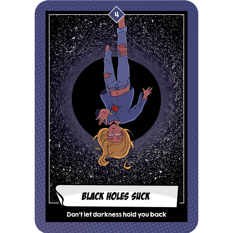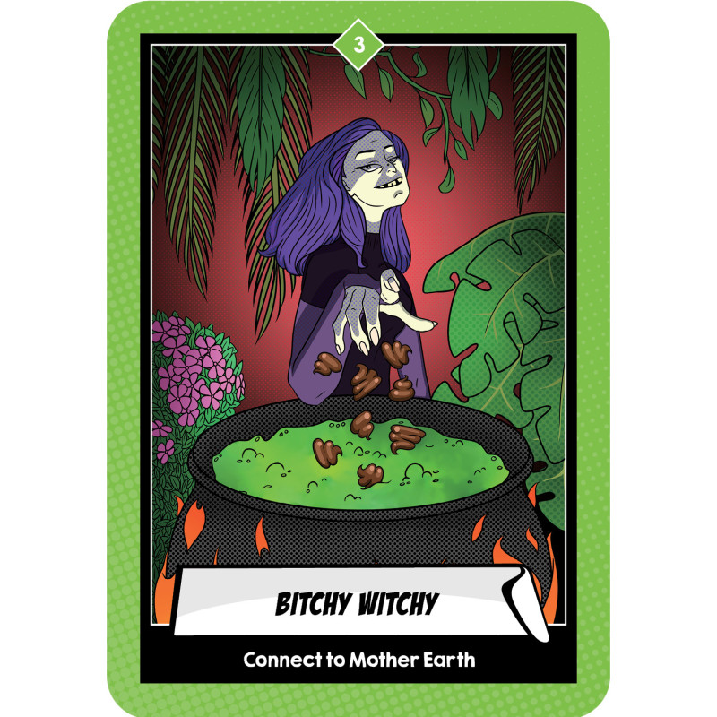 Each comically illustrated card, in a slightly mischievous and unacceptable way, shares with you intuitive knowledge of what work needs to be done now to move forward in the day.