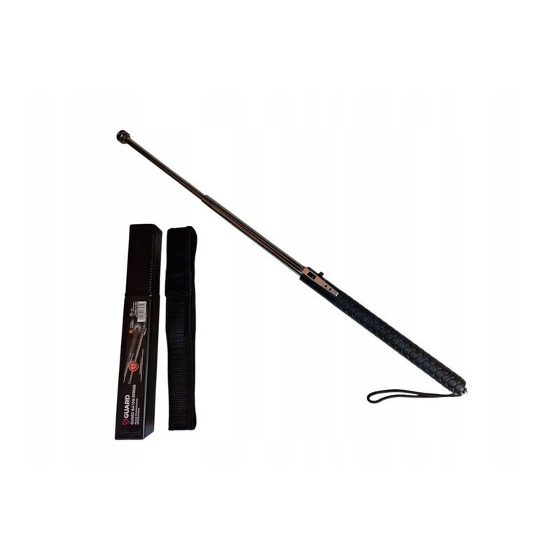 The GUARD Spring telescopic pole extends to 66 cm and folds to 29 cm, weighing 660 g. It has a non-slip holder, belt attachment, and also comes with a case and instructions for use.