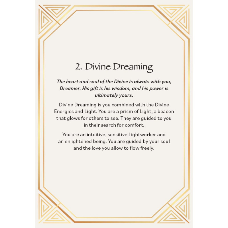 The Spirit Dreaming Soul Guidance card deck includes 40 cards and an instruction booklet. It is designed to provide spiritual direction and insight through channeled messages and illustrations.