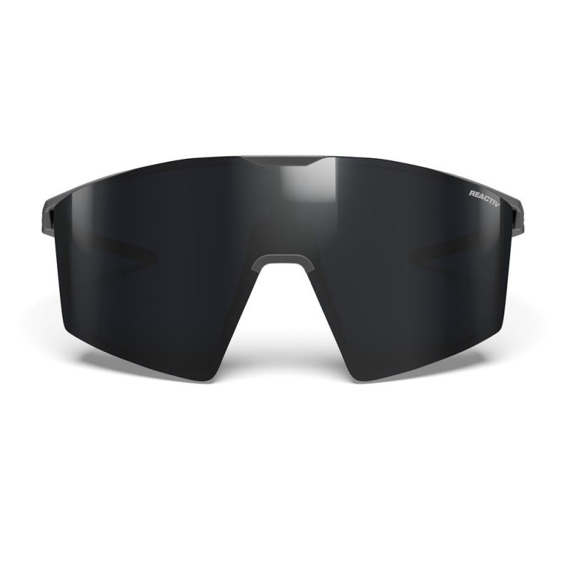 The unisex design of JULBO EDGE black sunglasses with black frame and lenses is perfect for a variety of sports. These glasses have a light transmission range from 12% to 87%, weigh 25 g, and the temple length is 124 mm and the bridge width is 15 mm.