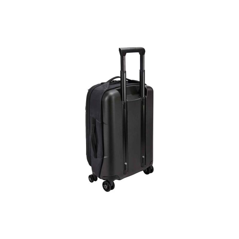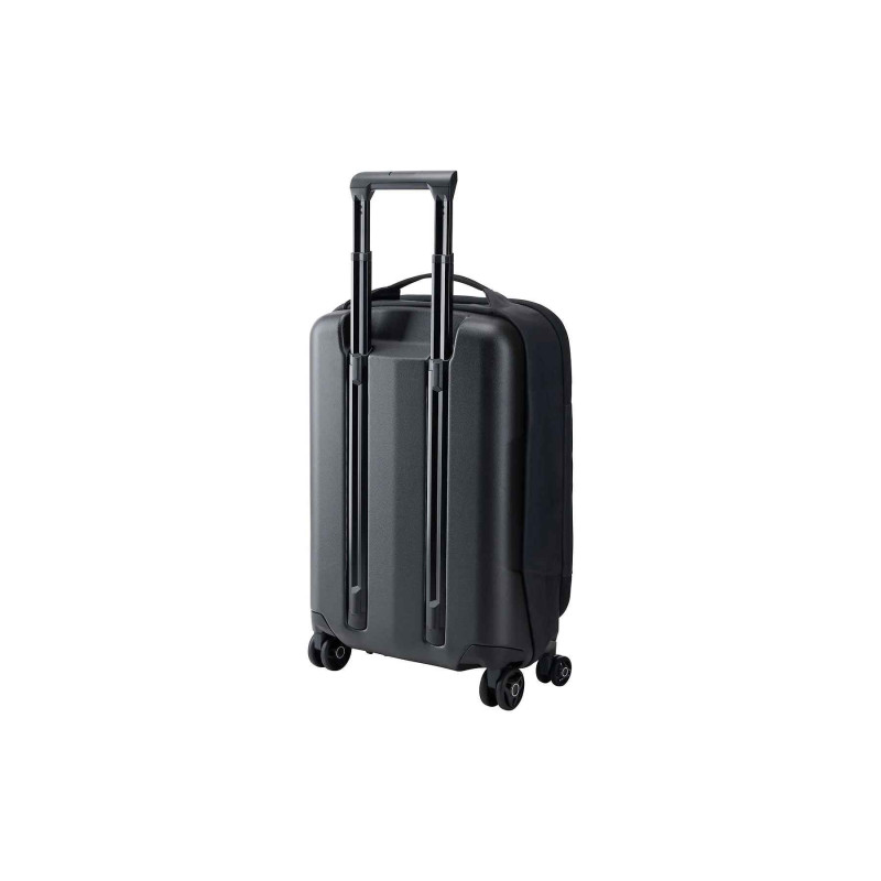 Durable exoskeleton with a polycarbonate back panel helps absorb the impact of travel