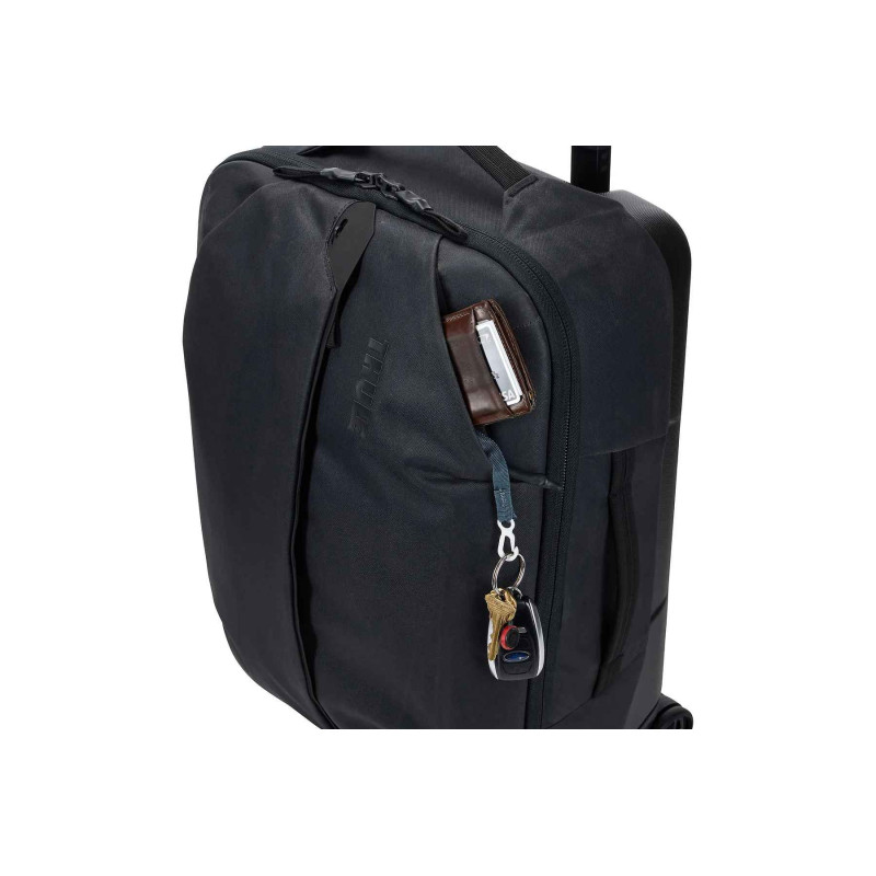 Zippered exterior pocket provides quick access to keys, wallet, and smaller items