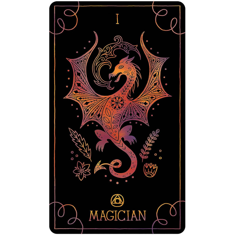 Inspired by rich mythological traditions, the Folklore Tarot presents profound universal truths about the nature of our world. While the stories of myth and legend come from diverse cultures, they share common themes, paths, and archetypes that are woven into the powerful symbols of the tarot. The Folklore Tarot bridges the gap between the past and the present, bringing the wisdom of ancient beings to guide us on our current journey. Each 'pip' card is illustrated with intricate floral elements, while the deck cards and the 'Major Arcana' feature characters from world mythology. Includes a 136-page illustrated guide and 78 cards with black-painted edges, printed with a unique combination of dot gloss and matte varnish, adding vibrant colors.