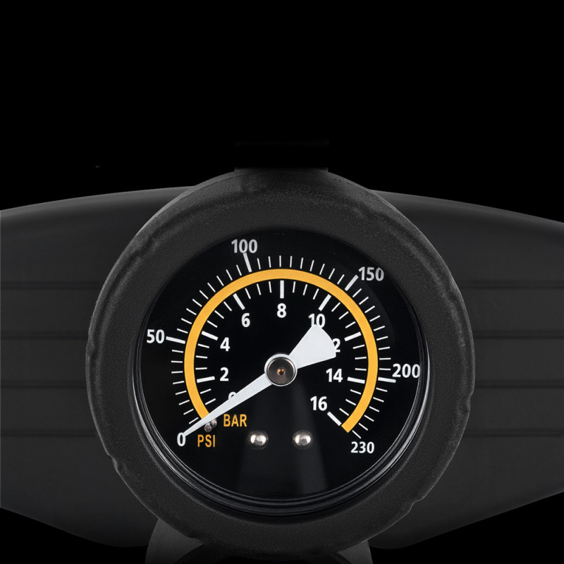 Presta and Schrader compatibility increases the pump's versatility.
