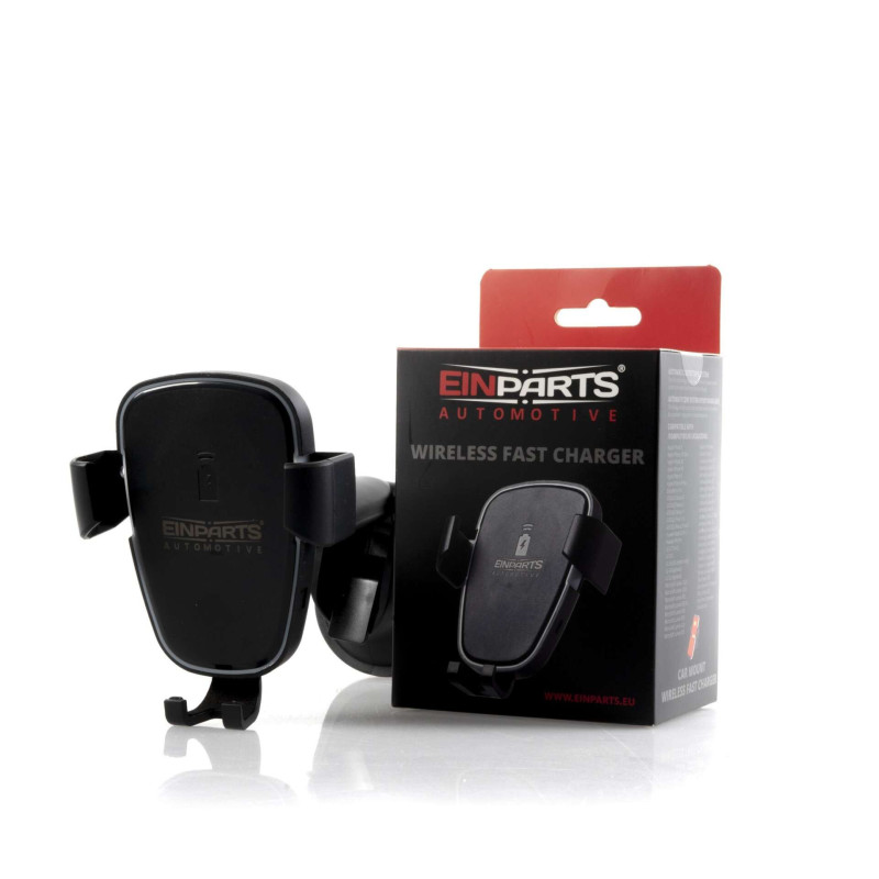 CAR HOLDER WITH INDUCTIVE CHARGERCar holder with built-in inductive charger from the brand EinParts Automotive Once the phone is inserted, the gravity mount will tighten the holder, ensuring full stability and preventing the phone from falling. The charger provides power to the phone thanks to induction technology (If your phone has the inductive charging function, fast inductive charging will start shortly after inserting it! The maximum charging power is up to 10W ). Technical parameters: