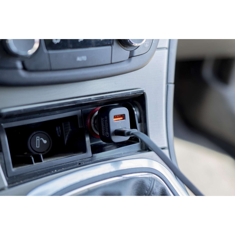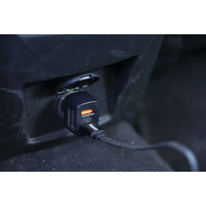 The EinParts Automotive charger is refined in every detail. USB ports are illuminated subtle blue light, so you can easily connect your phone to the charger without the light distracting the driver while driving. The charger is compact and lightweight - the weight is only 30g and dimensions are 63x38x28mm. The QUICK CHARGE fast charging function is the most commonly used fast charging technology in new smartphones. It increases the charging speed of the device even several times. The speed is so high that After 35 minutes of charging, we can get up to 80% battery charge. Technology QUICK CHARGE 3.0 The technology used in our charger adjusts the charging voltage (3.6-12V) to ensure optimal charging and optimal protection for the device's battery. The EinParts Automotive charger features two inputs with QUICK CHARGE 3.0 technology, allowing you to charge two devices simultaneously without loss or voltage drops. This feature is backward compatible, so the EinParts Automotive charger can easily charge devices with or without older versions of this technology. Technical data: