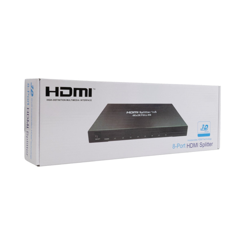 The Splitter with 8 ports V2 supports Full HD 1080p/60 Hz and 4K/30 Hz, delivering 10.2 Gbps bandwidth and 8/10/12-bit color depth.