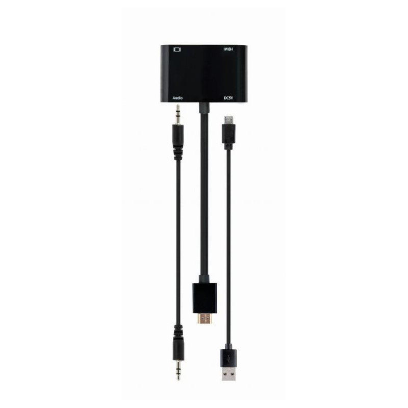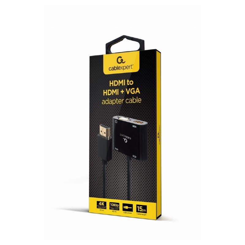 HDMI male to HDMI female + VGA female + audio adapter cable, black