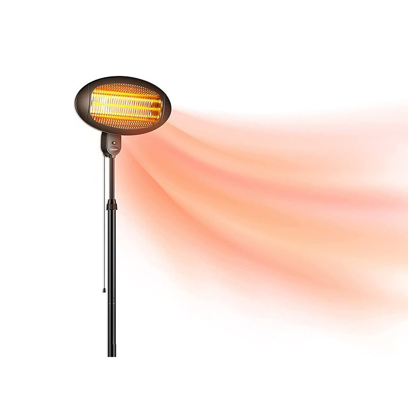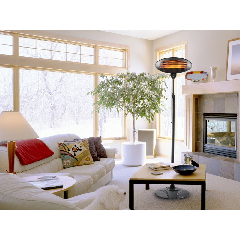 Radiant panel with quartz heating elements, perfect for bringing heat to any outdoor environment. Floor stand height adjustable up to 2 m and heavy round base for maximum stability, floor fixing kit for maximum safety. 3 power/heat settings selectable throught the pull switch and adjustable head tilt to direct the heat.