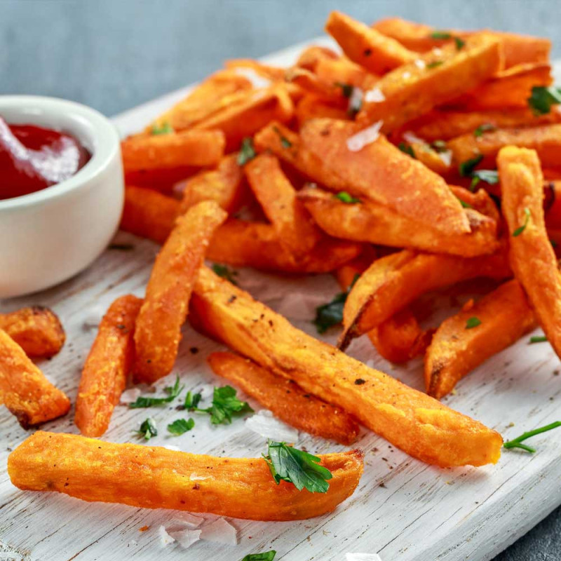 8 preset programmes for fries, chicken wings/thighs, fish, beefsteak and cutlet, cakes and dried fruit