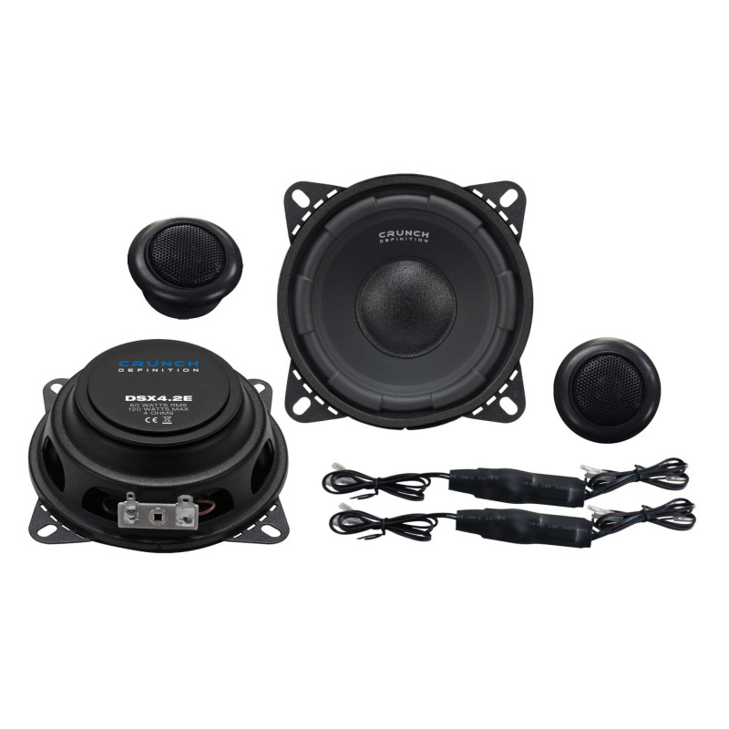 Crunch DSX4.2E it's a compact set 100 mm separated speakers from the series Definition, designed for cars with limited mounting space. It's the perfect solution for those who want to improve the quality of their factory sound system without having to modify the mounting locations.