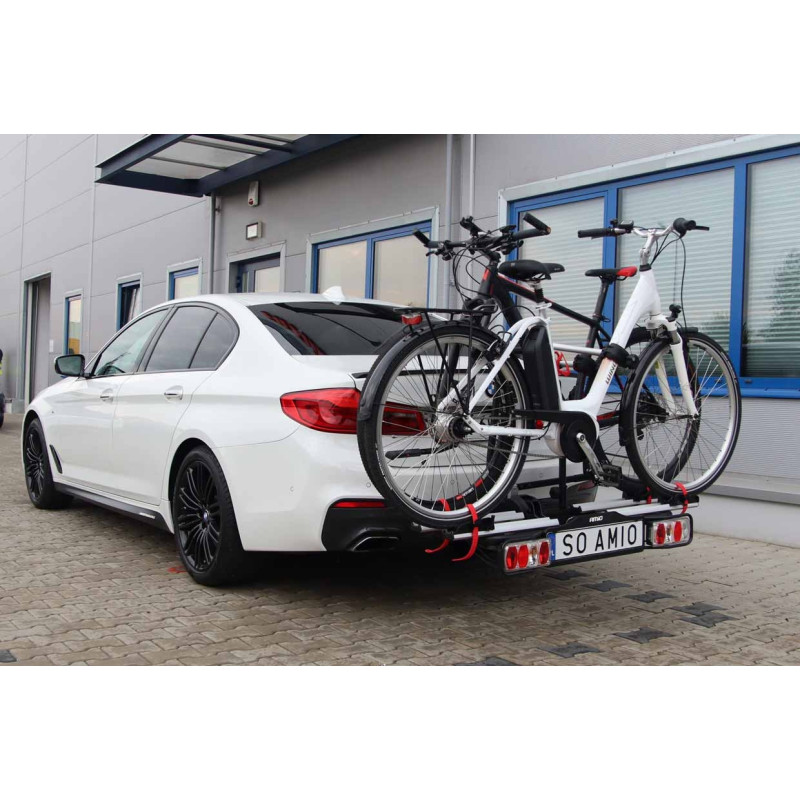 A sturdy, towbar-mounted, tilting platform for transporting one to four bikes.